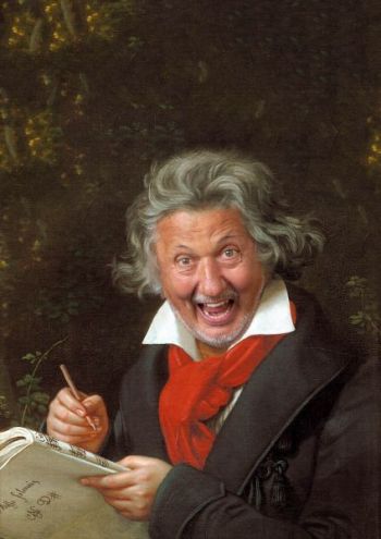 Mit drei Jahren habe ich die erste Schellackplatte auf den Küchenboden fallen lassen: Beethoven’s Klaviersonate „Pathétique“, gespielt von Wilhelm Kempff. Alle fielen ins Koma, ich hab’s überlebt. Mein Leben lang hat er mich seitdem begleitet, Ludwig der Große. Jetzt ist es an der Zeit, zu erzählen, was dabei herausgekommen ist. Dass er die Fünfte, die Neunte, den Fidelio oder die Wut über den verlorenen Groschen geschrieben hat, weiß jeder. Dazu brauchen Sie nicht zu mir zu kommen, das steht alles in den Programmheften der Konzertsäle. Privat war er allerdings alles andere als der Fackelträger abendländischer Moral: der Schwerenöter war hinter Frauen her, aber hallo! Meistens aber erfolglos und wenn die Sehnsucht allzu groß wurde, hat er sie sich gemietet, er jonglierte mit dem Geld, dass es jeden Hütchenspieler begeistert hätte, er schrieb immer wieder Rheinlieder und versteckte sie in berühmten Kompositionen, weil der Rhein in Wien kein Schwein interessierte, er war verlobt mit einer Bonnerin, die ebenfalls in Wien lebte, er war ein Helikopteronkel wie er im Buch steht, er hat Fürsten erpresst und der Trinker Beethoven war ein launiger Griesgram, der allein mit seinem Lachen Geld hätte verdienen können, so laut und ansteckend war es.